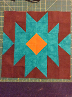 So, this summer I decided to start going to the local quilt guild meetings. They have been doing a block swap this year. September was the first month that I was able to make blocks to contribute. Each person gets to pick a theme or color combination and everyone makes a block for them. All blocks are 12.5".