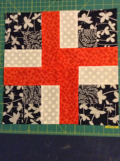 The first was a color combination of red, black, and white. I used one of the modern quilt blocks from Tula Pink's book.